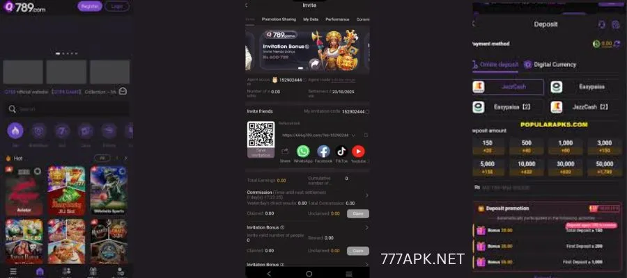 Q789 is an online earning game designed for Pakistani users, where you can play real-money games like slot machines, card games and more. The app supports a range of game types, making it suitable for both casual players and those who want to dive deeper into competitive rounds.
